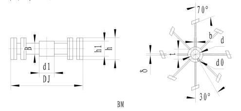DJ | d | d1 | h1 | B | h | d0 | 鍵槽 | δ | 重量 (kg) |